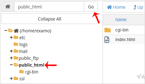 4. Navigate to the directory where you want to upload your files. For example, should you wish to upload your file to the public HTML folder, you need to go to /public_html first. On the left side, you can see a list of directories. Double Click on the public_html folder.