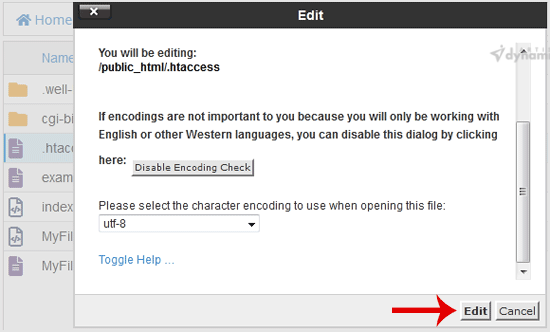 6. Right-click on the .htaccess file and then on Edit in the Context Menu.