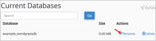 3. Under Current Databases, You can see a list of all your databases. Locate the Database and then click on Rename Icon.