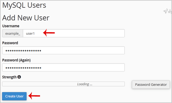 3. Under MySQL Users in the Username field, enter the new username you wish to create.