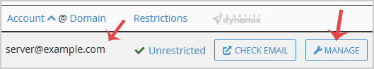 4. If your email address is server@example.com, you should see a Manage option on the right side of your email address. Click on Manage.