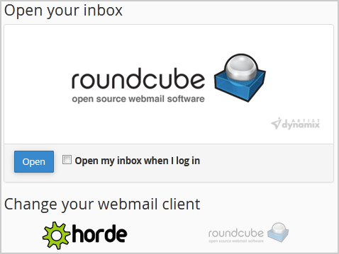2. You will be redirected to a cPanel Webmail Page. Click on any Webmail Email Reader like Horde, Roundcube or any other available application.