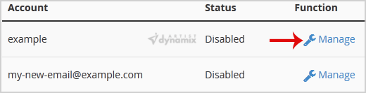 3. From the BoxTrapper Page, you can see a list of your emails under the Account tab and the status of BoxTrapper (enabled/disabled) under the Status tab. Click on the Manage link.