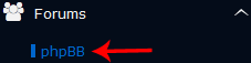 5. On the left side of your screen, you should locate the Forums category. Click on it and then click on the phpBB link that will appear.