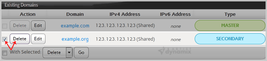 4. Under Existing Domains tab, Select Appropriate domain name you want to delete.