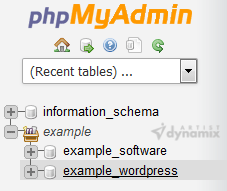 3. In left side-bar, Click on the expand button to expand the database like "example".
