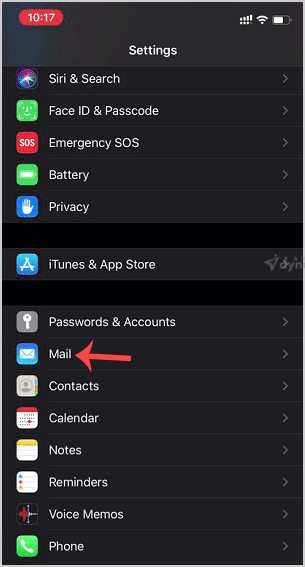 2. Scroll down and tap on Mail.