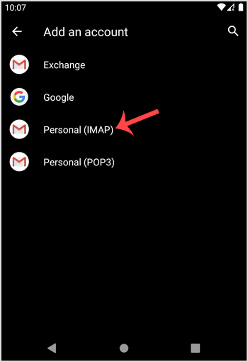 4. Now tap on the Personal IMAP option.
