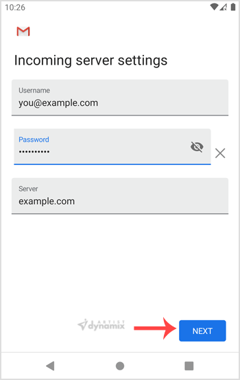 5. In the "Add your email address" section, enter your full email address such as you@example.com. Then tap Next and enter your password. Tap on the Next button again.