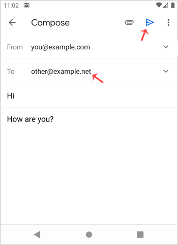 3. Enter the email address of the person to whom you want to send your email in the To Field, an email subject, and your message. Then click on the Send icon.