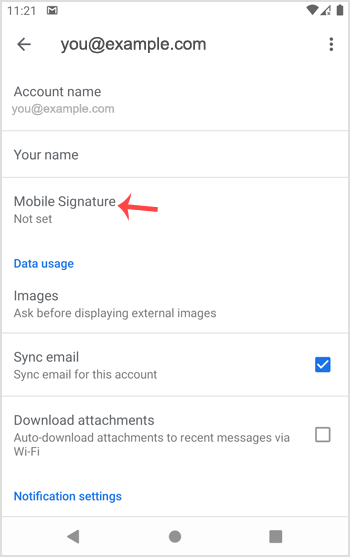 The built-in Android email application allows us to set a custom email signature, which will display at the end of your email.