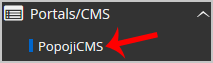 4. On the left side of your screen, you should locate the Portal/CMS category. Click on it and then click on the PopojiCMS link that will appear.