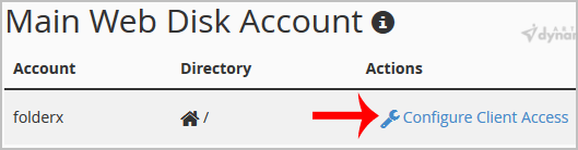3. Under Main Web Disk Account, click on Configure Client Access.