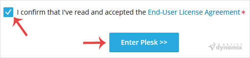 Final Step: Scroll down to the end of the page, read and accept the End-User License Agreement and then click on the Enter Plesk button.