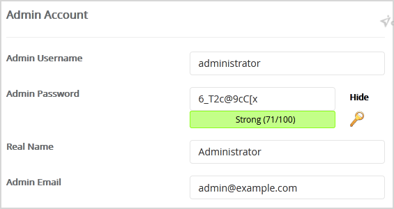 • Admin Username: Your new Saurus username (for security reason do not use the Administrator or the Admin username.)