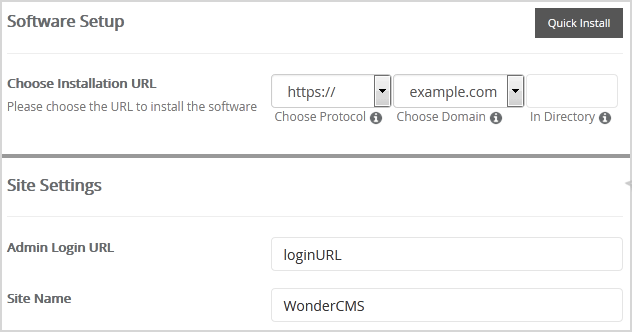 - Site Name: Enter the name of your website, such as WonderCMS.