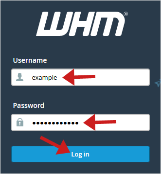Open your WHM URL, and once WHM opens in your browser, it will ask for your username/password.