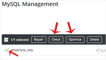 4. Click on the Check button to examine or click on Optimize to optimize your database.