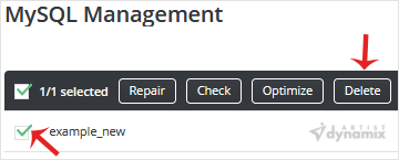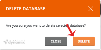 4. Click the Delete button, and a new window opens, asking you for confirmation. Click again on Delete to remove the database.