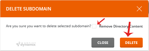 4. Click on the Delete button. If you also want to remove directory contents, then checkmark Remove Directory Content and then click on the Delete button.