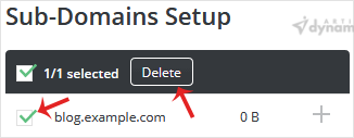 3. Under the Subdomain Name, Select the subdomain name you wish to remove.
