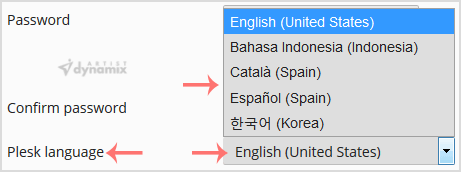 4. Scroll down to the Plesk language and choose yours from the drop-down menu.