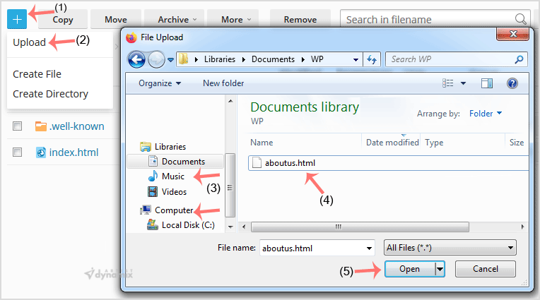 4. Click on the plus icon and choose Upload. Then find the file you wish to upload from your computer.