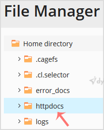 3. Under File Manager, click on httpdocs directory or any other directory where you wish to create your new file or directory.