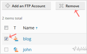 5. Tick mark the appropriate FTP Account and then click Remove.