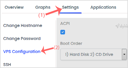 4. Go to the Settings tab and then choose the VPS Configuration option.