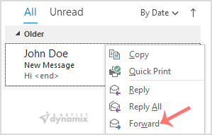 2. Go to Inbox, right click on the message you want to forward, and click on Forward.